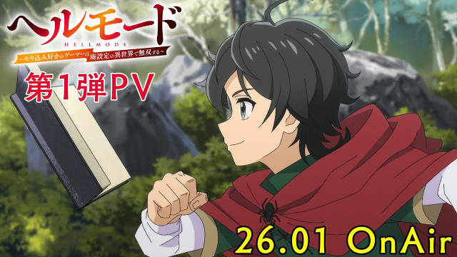 《地狱模式~喜欢速通游戏的玩家在废设定异世界无双》公开第一弹PV、主视觉图、主要制作人员,追加声优:石川英郎、大原さやか、小市眞琴,片头曲由あたらよ演唱,片尾曲由花耶演唱,该作将在2026年1月开播!
